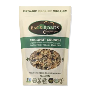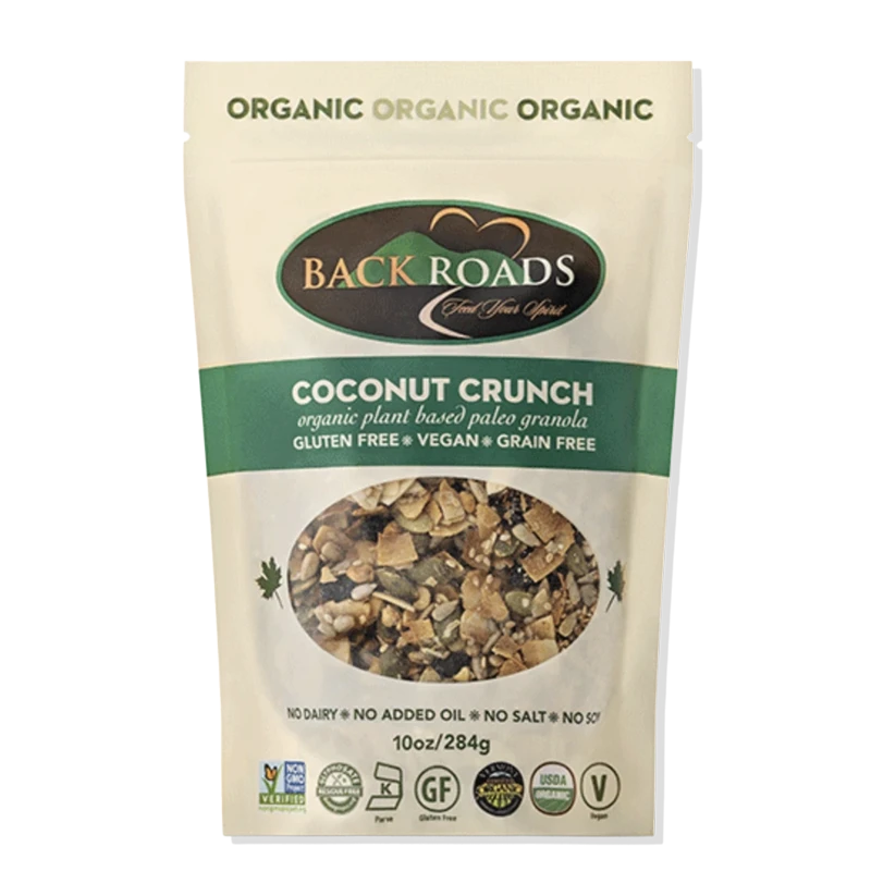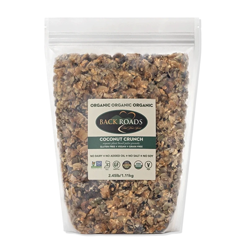Coconut Crunch is completely grain-free and super nutritious. An abundance of perfectly roasted organic coconut flakes makes this granola delicious. 4 grams sugar per serving, no sodium, no added oil.