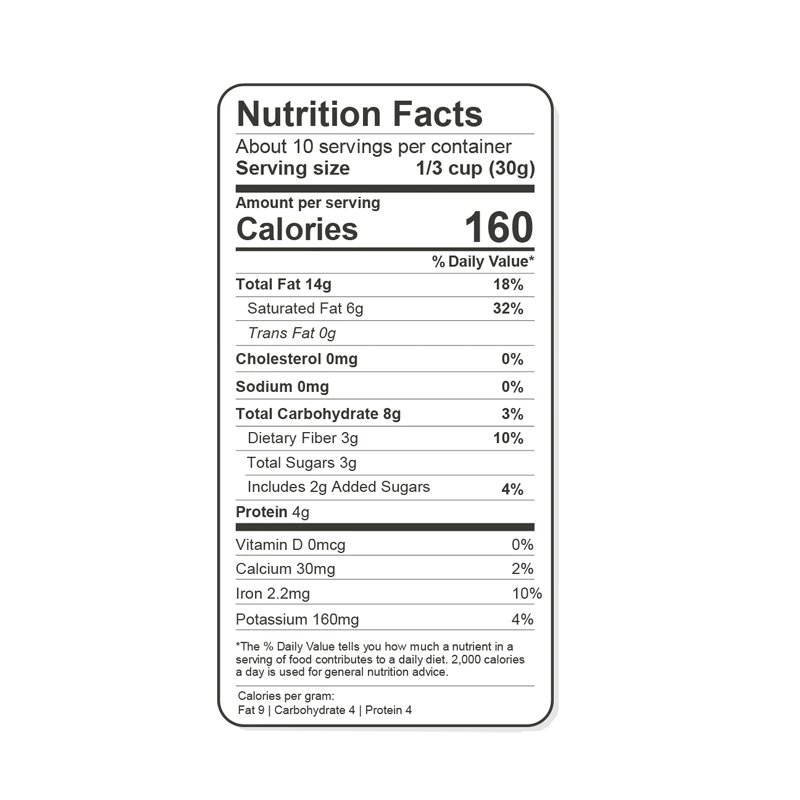 Certified Glyphosate Free • Gluten Free • Low Sugar • No Added Fruit or Berries • Non GMO Project Verified • Organic • Paleo • Grain Free • Vegan