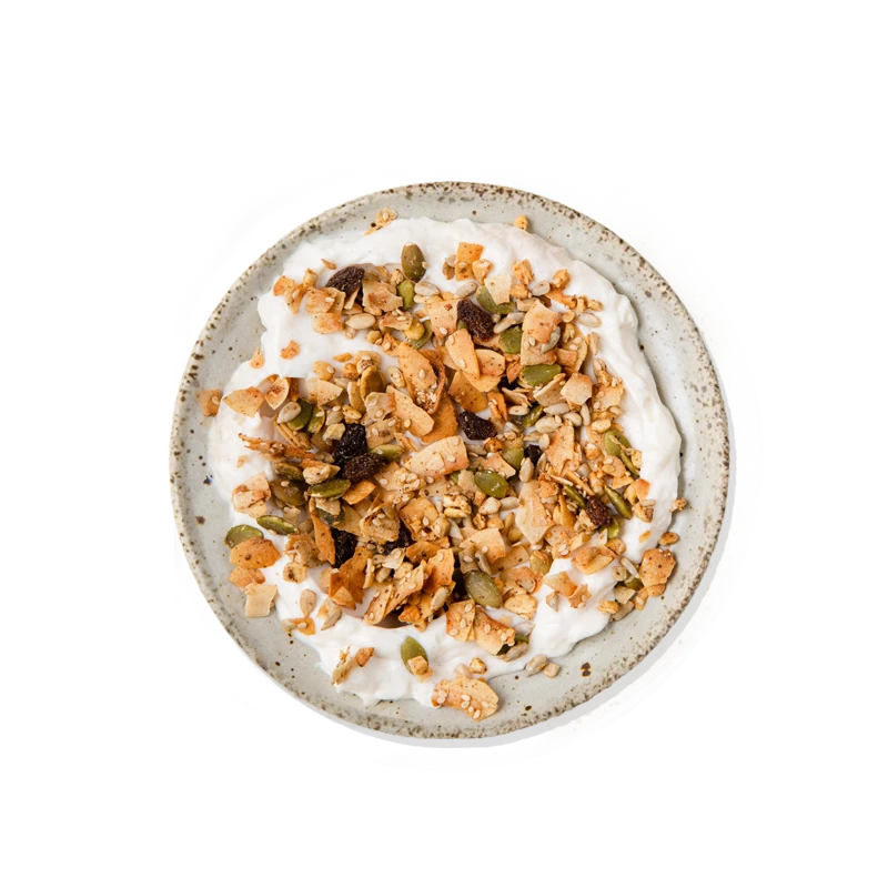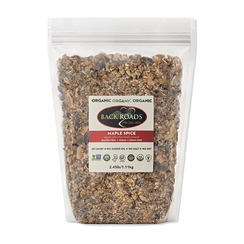 Paleo Maple Spice is completely grain-free and super nutritious. An abundance of perfectly roasted organic coconut flakes, combined with fresh ground chai spices (a mixture of cardamom, cinnamon, cloves, ginger, and peppercorns), makes for a satisfying, aromatic combination. 4 grams of sugar per serving, no sodium, and no added oil.