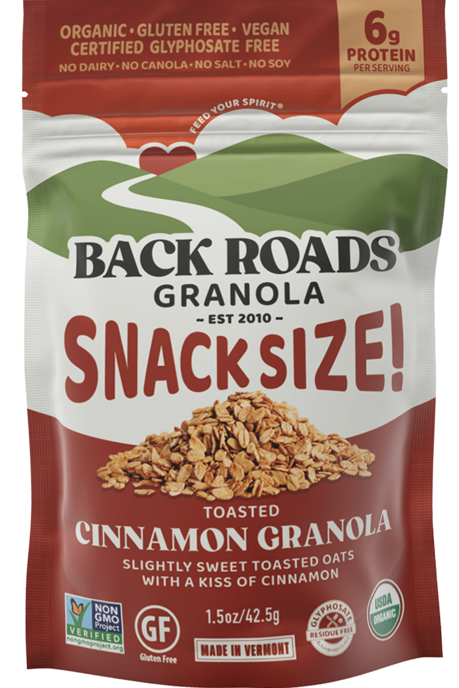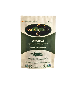 Because our granolas are healthy, super crunchy, roasted to perfection & delicious, our health-conscious customers have told us they often eat Back Roads as a healthy, on the go, snack ~ right out of the bag. We listen to our customers. Take Back Roads with you, anywhere you go, in attractive 1.5oz bags.